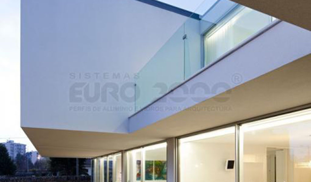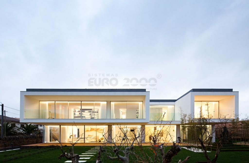 Moradia unifamiliar com arquitetura de autoria Nuno Lacerda que adapta os espaços interiores a diferentes necessidades cuidadosamente iluminados por grandes janelas suportadas por dois dos sistemas de caixilharia em aluminio Euro 2000 da Sosoares, com certificação CE garantindo o máximo conforto, segurança e eficiência energética.